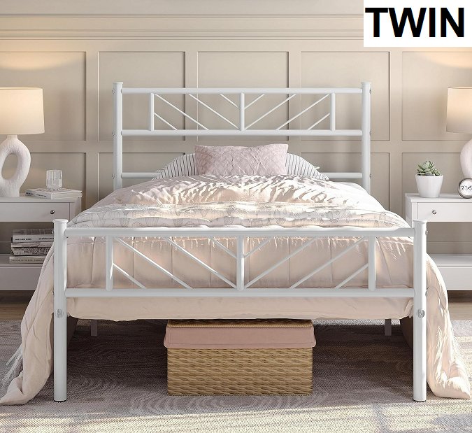 Yaheetech Platform Bed Foundation with Arrow Design Headboard - TWIN - white (model: 613713)