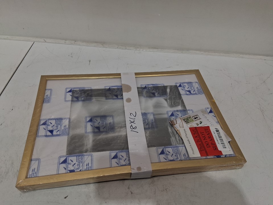 2pk American Flat picture frame - 12" x 18" frame 7.5" X 11.5" With mat - gold