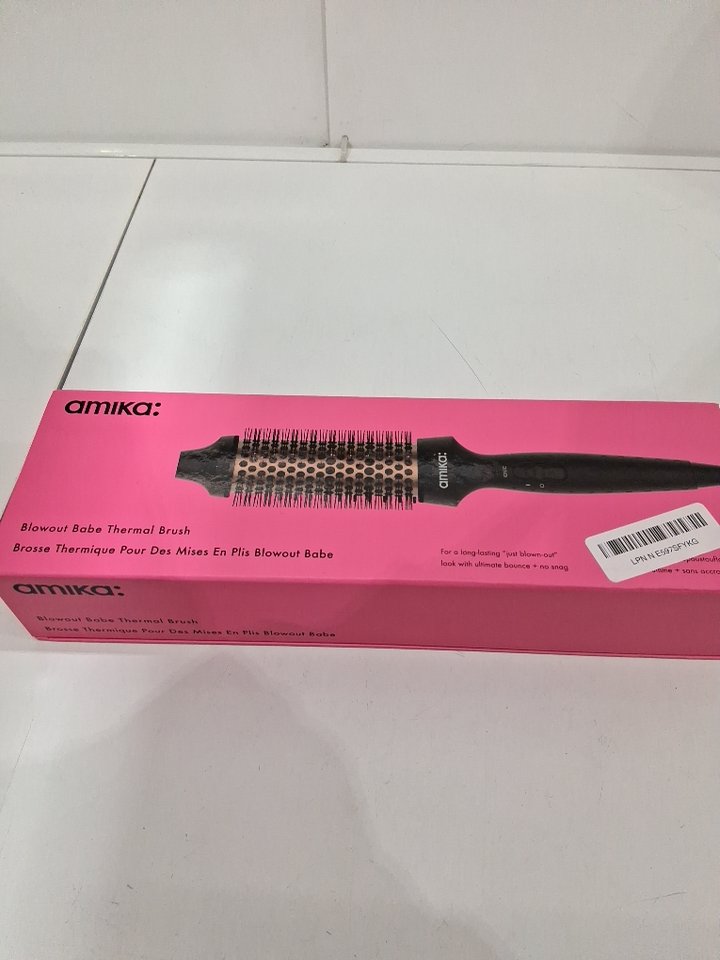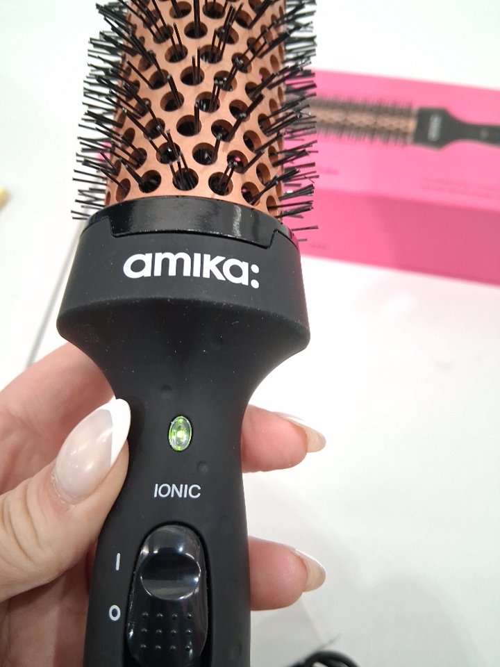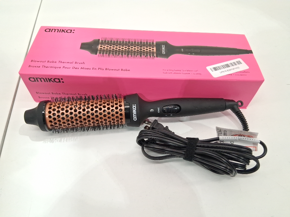 amika blowout babe thermal ionic hairbrush - a blowout look with no blow dryer or hot air - 1.5" ceramic barrel - black - (model: hms0045).