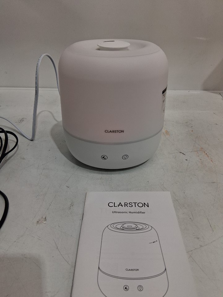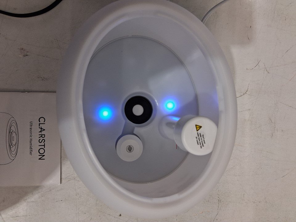 clarston cool mist humidifier for bedroom - light off auto shut off easy top fill humidifier - 2l - white (model: 10056)