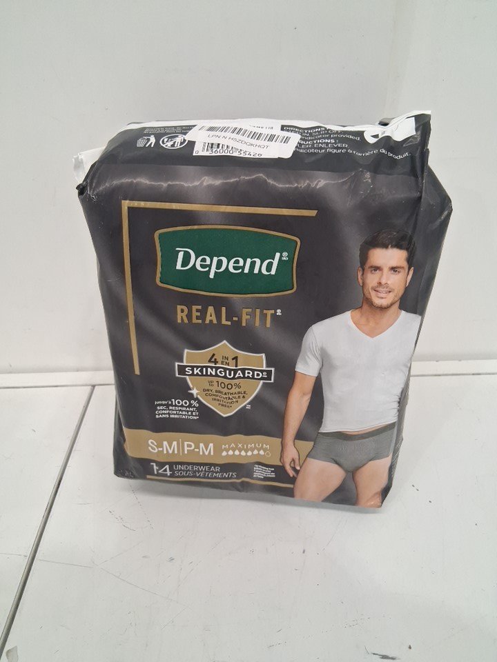 14PK MEN'S DEPEND REAL FIT UNDERWEAR - MAXIMUM ABSORBENCY - SMALL/MEDIUM - GREY