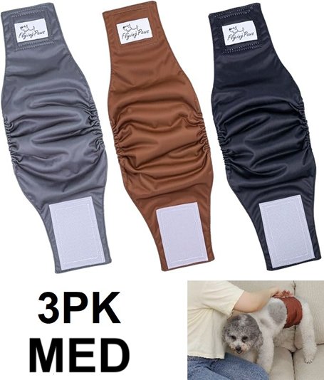 3PK FLYING PAWS WASHABLE MALE DOG belly wrap diapers - Medium - ASSORTED