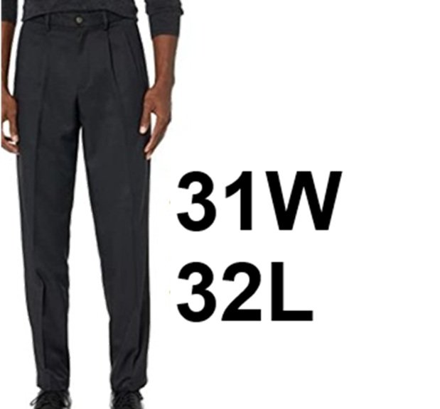 MENS' AMAZON ESSENTIALS CLASSIC-FIT EXPANDABLE-WAIST PLEATED DRESS PANTS - 31W x 32L - BLACK