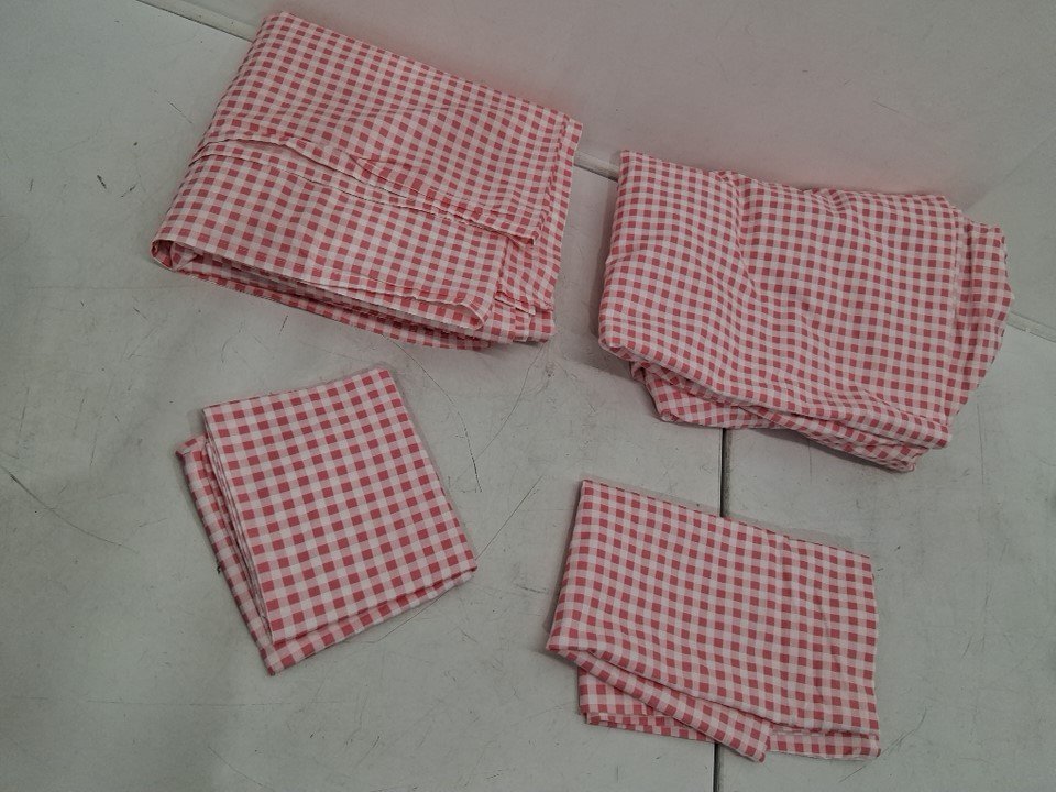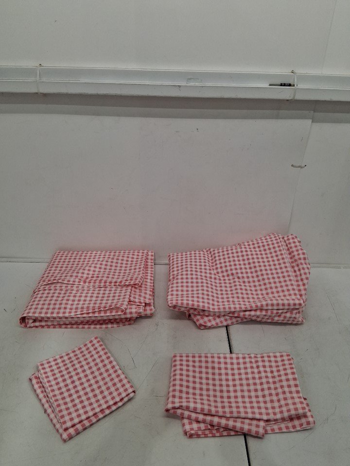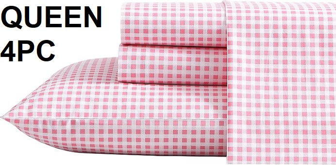 4PC POPPY & FRITZ Cherries Cotton Queen Sheet Set, 2 PILLOW CASES, FLAT AND FITTED SHEET - QUEEN - Gingham Plaid Pink
