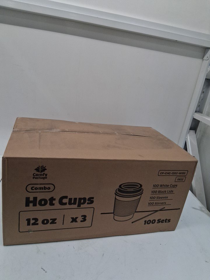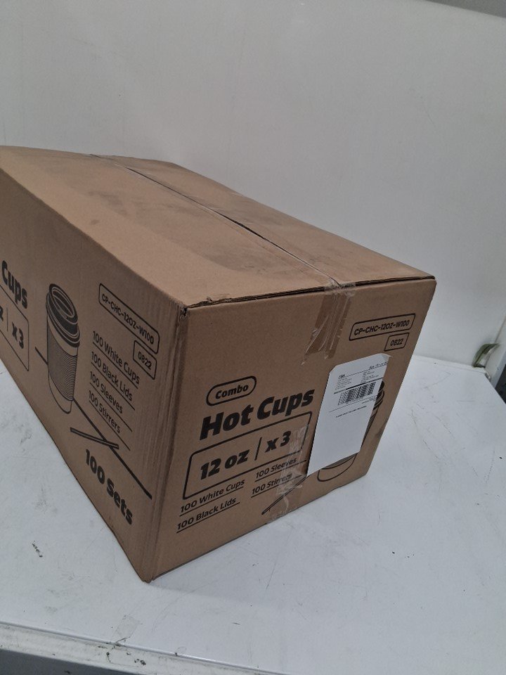 300PK GUSTO Insulated Kraft Paper Hot Cups with lids, sleeves and stirrers - 300 each - 12oz - black/white