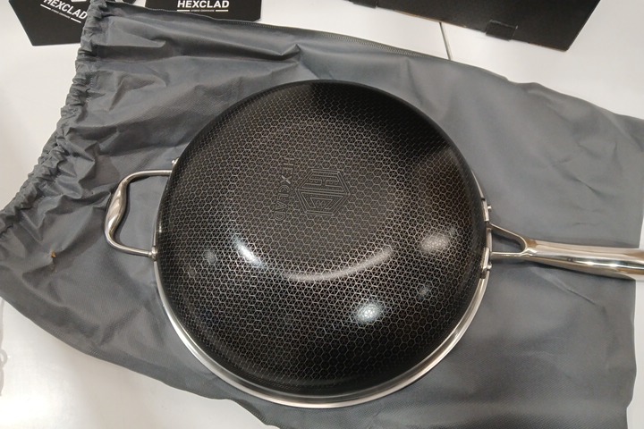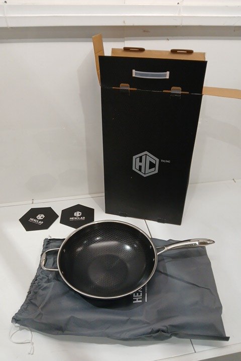 hexclad hybrid stainless steel wok with stay cool handle - 12" - black/stainless steel (model: ‎HEX12WOK)