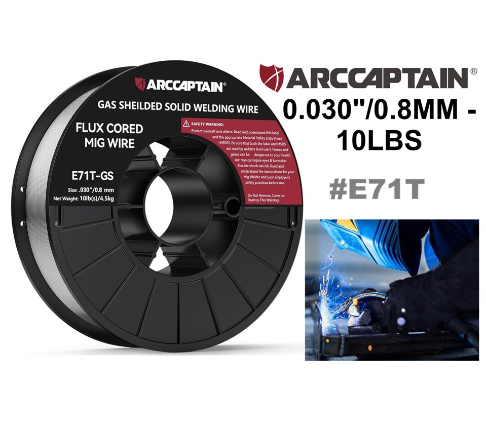 ARCCAPTAIN Flux Core Welding Wire Gasless Mild Carbon Steel Mig Welding spool - 0.030"/0.8MM - 10LBS (model: E71T)