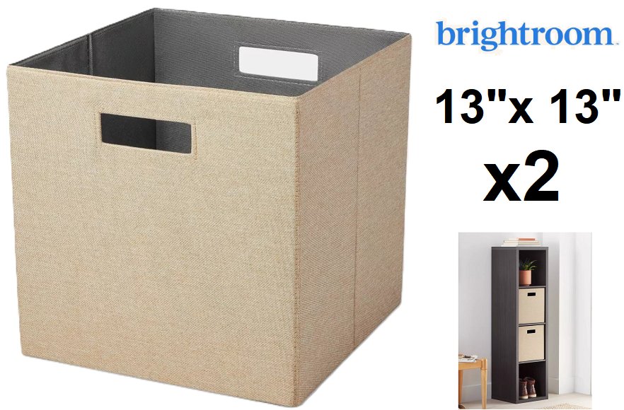 2 BRIGHTROOM FABRIC BIN WITH BUILT IN HANDLES - 13" X 13" - BEIGE