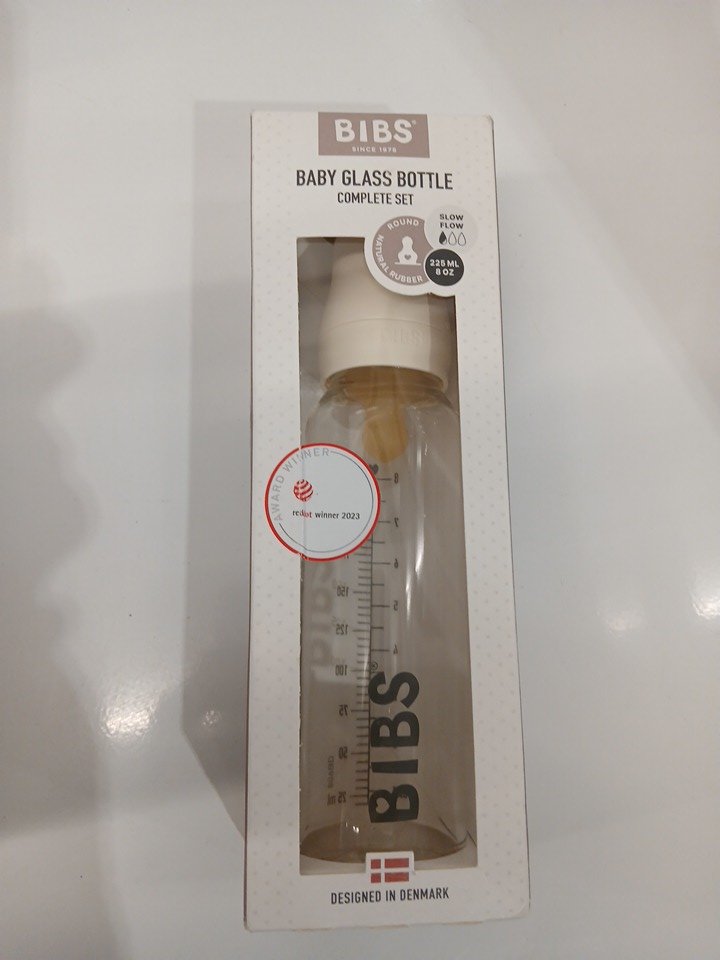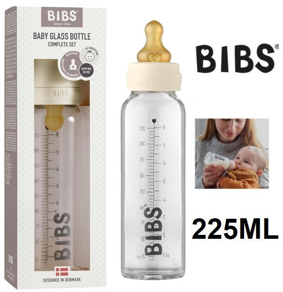 BIBS Baby Glass Bottle Complete Set - BPA Free Natural Rubber - 225ML - IVORY