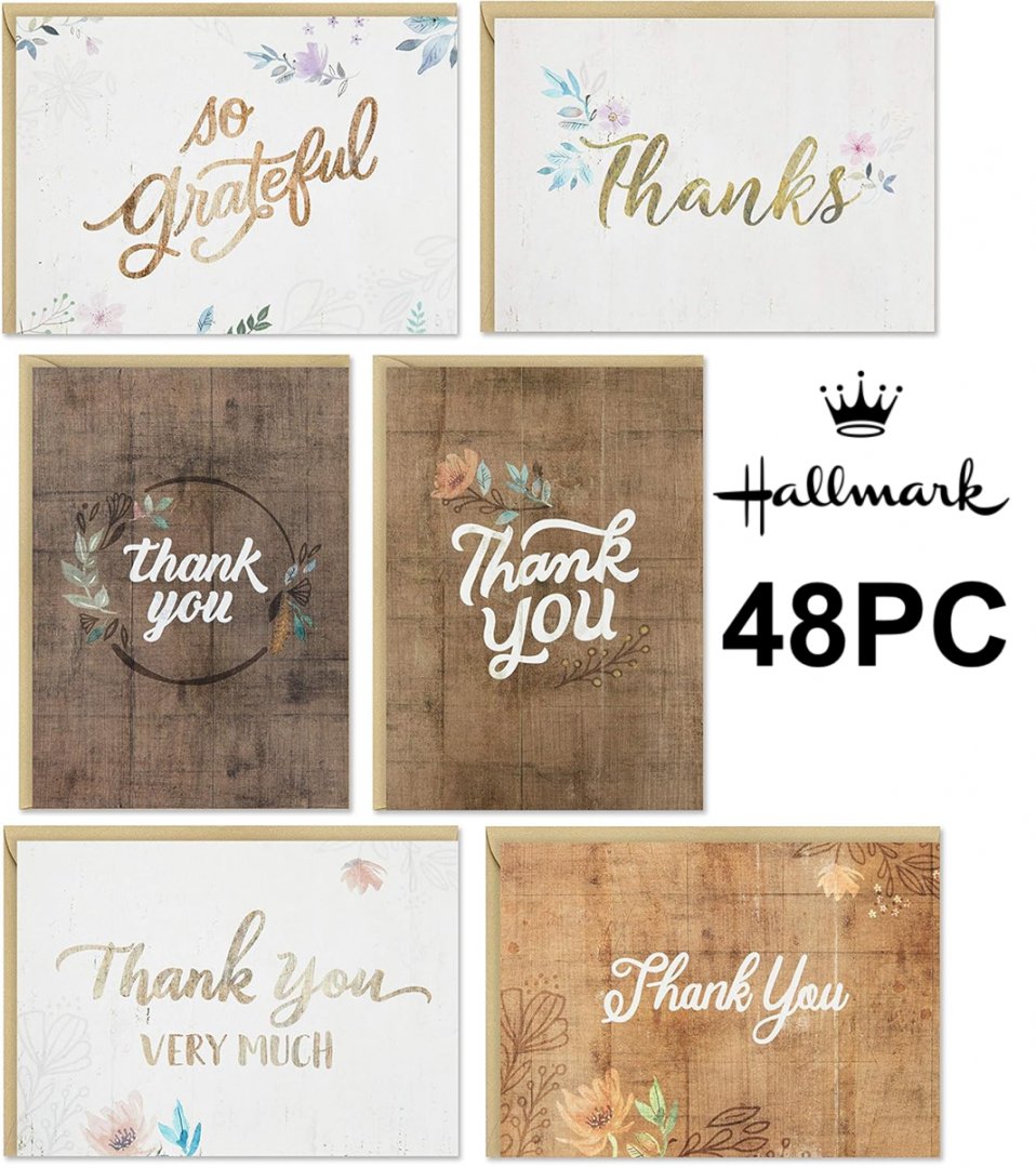 48PC Hallmark Rustic Flowers Thank You Cards Assortment - 5.2" x 3.75" (Model: ‎5STZ1066)