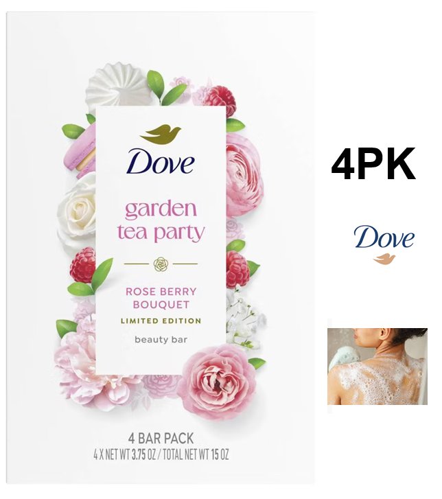 4pk Dove Beauty Garden Tea Party Bar Soaps - Rose Berry Bouquet