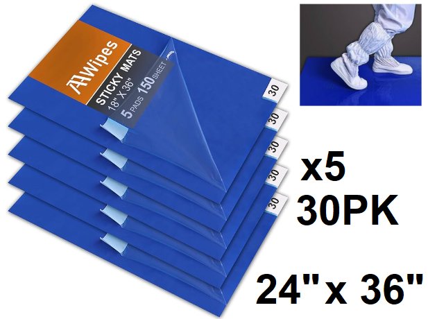 (5) 30PK AAwipes adhesive sticky mat pads - 24" x 36" - 150 sheets total - BLUE