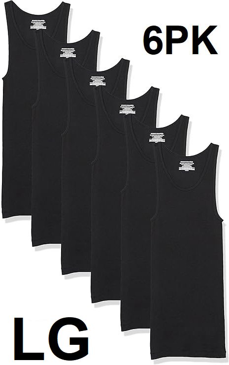 6PK Men's Amazon Essentials Undershirt Tank top - xxl - black (Style: S17AE80002)