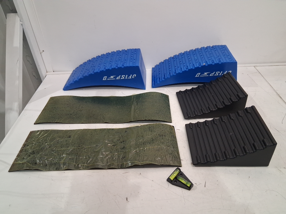 4PC RV Leveling Blocks Ramp Kit with Two Chocks 2 Anti-Slip Mats and carrying bag - BLUE/BLACK