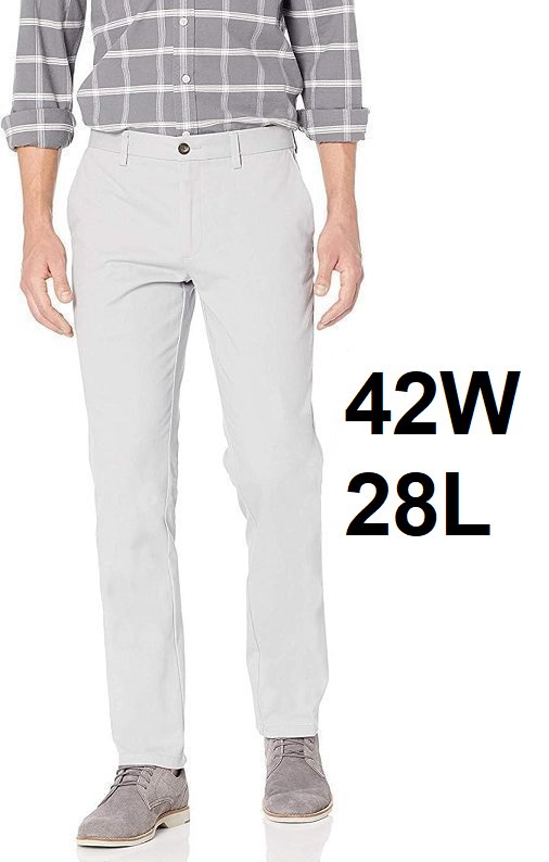 MEN'S Amazon Essentials Slim-Fit Wrinkle-Resistant Flat-Front Chino Pant - 42w X 28L - LIGHT GREY (STYLE:MAE60009SP18)