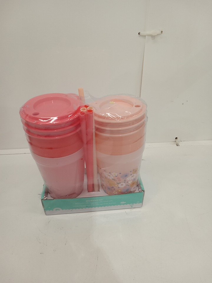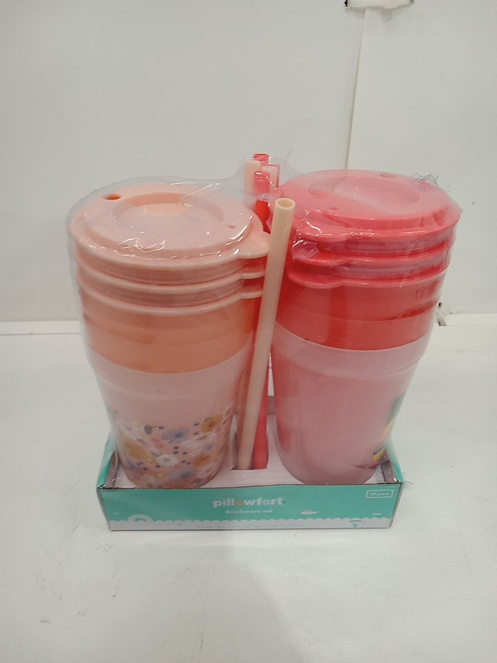 18PC kids pillowfort drinkware set - coral/pink