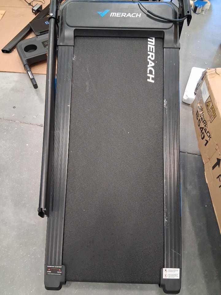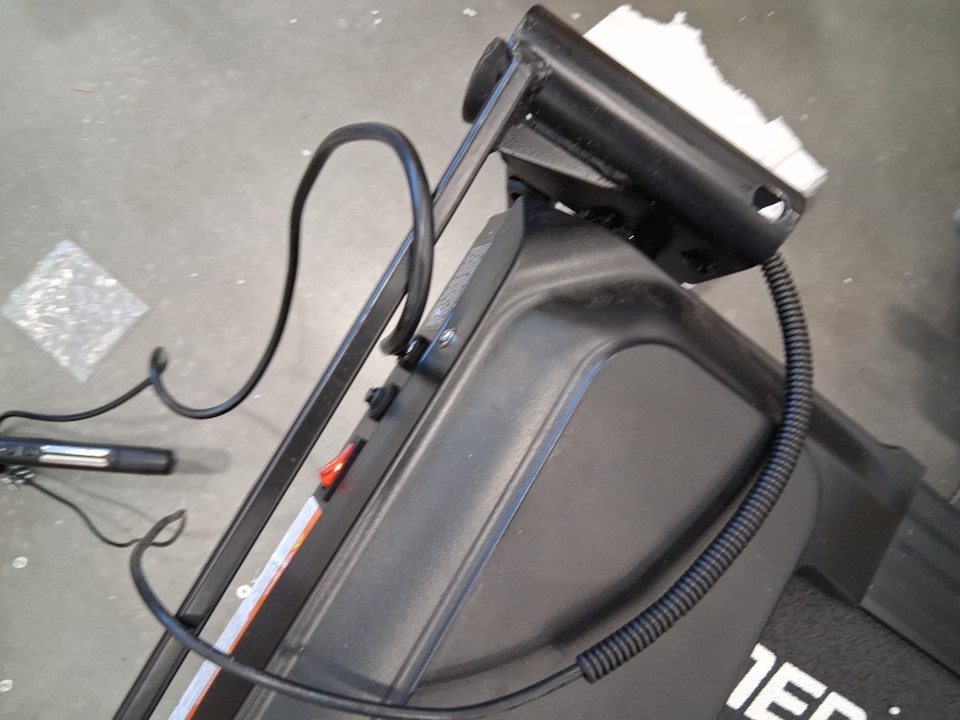 Missing some hardware, piece is bent out of place which may be able to be bent back into place. Item tested for power and the treadmill works on max speed. There are assembly marks present