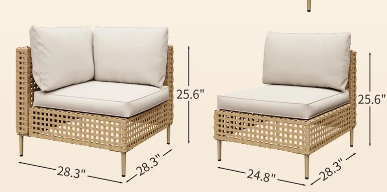 Sold as part of a 7-piece sectional seating set, we only have one corner piece and one armless seat which can be combined to make a chaise.