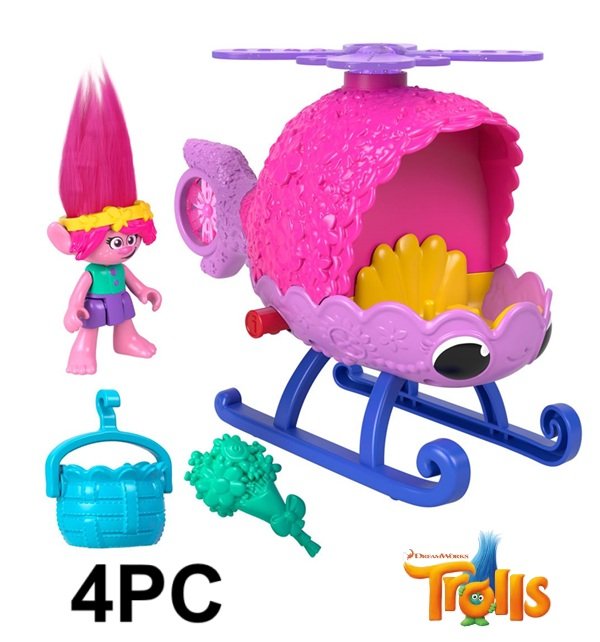 4pc FISHER PRICE imaginext dreamsworks trollz 3-8 helicopter - pink/purple