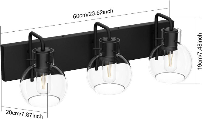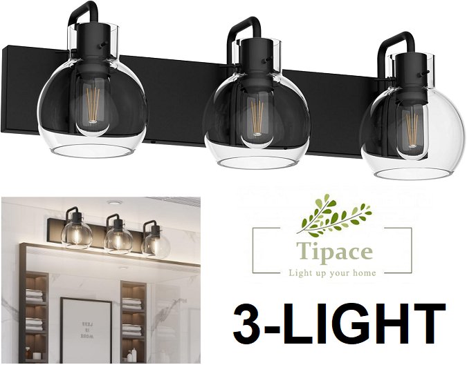 TIPACE 3-LIGHT INDUSTRIAL BATHROOM VANITY LIGHT FIXTURE, FARMHOUSE STYLE - 23.62" LENGTH - BLACK (MODEL: 7493-3T)
