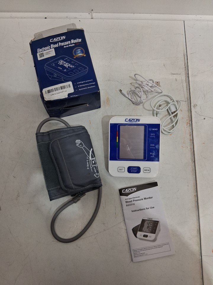 Elite Medica accessible Voice Broadcast Arm Type Blood Pressure Monitor machine for home use - blue/white (model: bsx516)