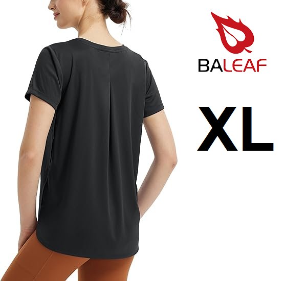 women's baleaf Short Sleeve Workout Shirt with UPF 50+ - x-large - black - (style: bgr001)