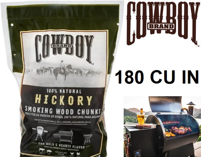 cowboy brand 100% natural hickory smoking wood chunks for bold & hearty flavour - 180 cu.in.