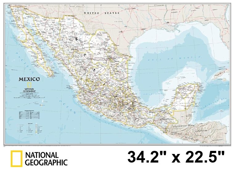 National Geographic Classic Mexico Wall Map laminated - 34.5" x 22.5"