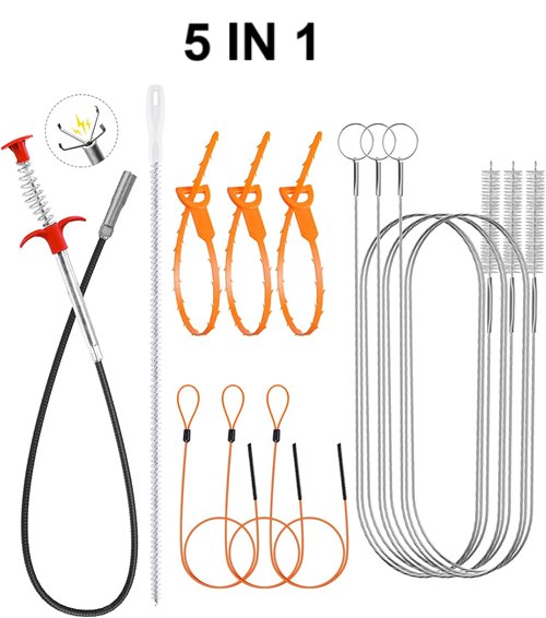 xfire-gear 5in1 Drain Snake Set with 24-inch Magnetic Sewer Cleaning Hook
