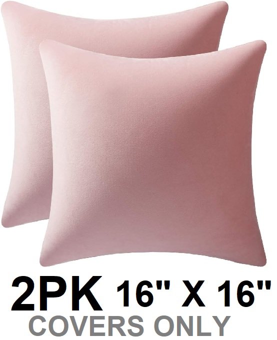 2pk dezene Cozy Soft Velvet Square Decorative Pillow Covers - 16" x 16" - baby pink