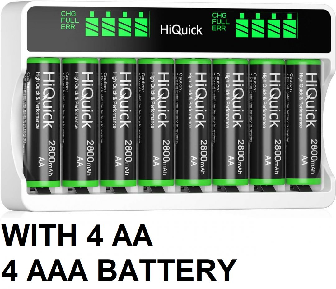 HiQuick 8 Bay Independent Smart LCD AA AAA Battery Charger and 8 Double AA Batteries 2800mAh