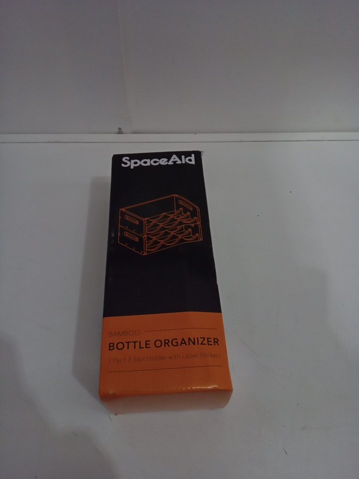 SpaceAid Bamboo Water Bottle Organizer with Labels for Kitchen and Pantry - holds 6 bottles - bamboo