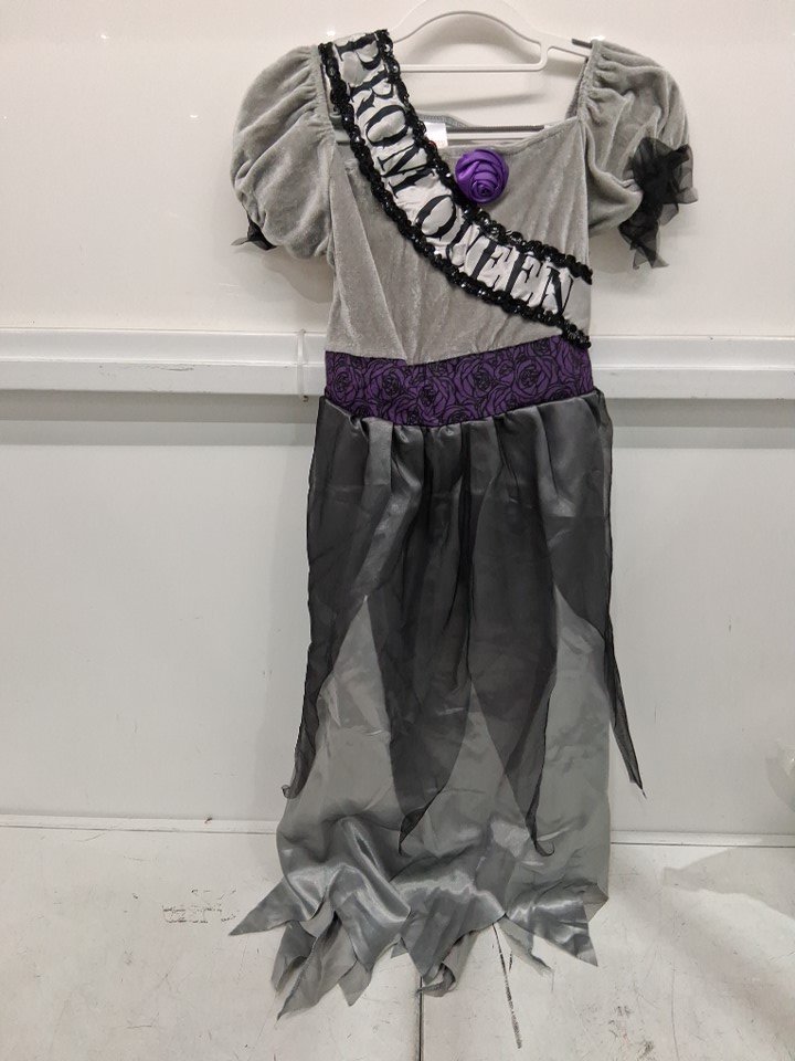 Girl's MorphCostumes Spooky Prom Queen Costume - Size Medium - Grey/Black/Purple