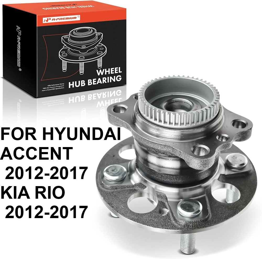 A-Premium Rear Wheel Bearing and Hub Assembly with ABS Ring & 4-Lug Compatible with Hyundai Accent 2012-2017, Kia Rio 2012-2017 REPLACES #512483
