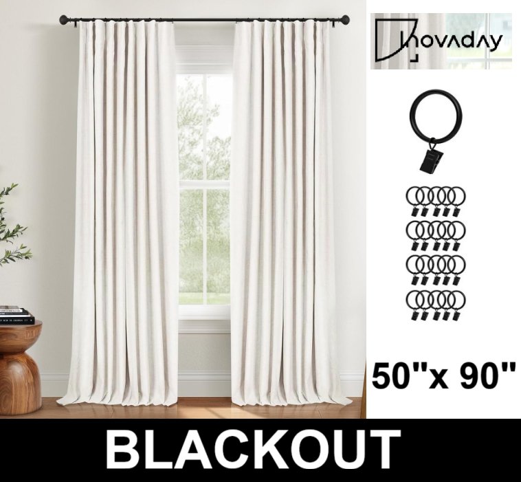2 PANELS INOVADAY BLACKOUT LINEN CURTAINS WITH RING CLIPS - 50" X 90" - beige