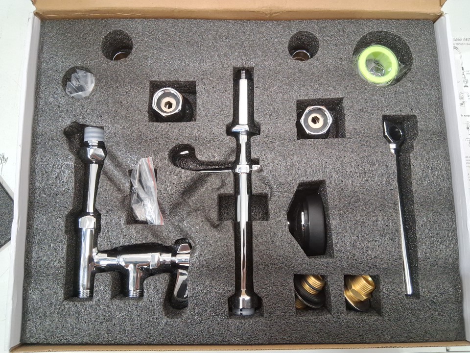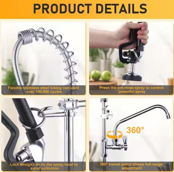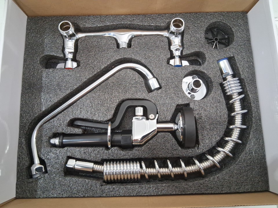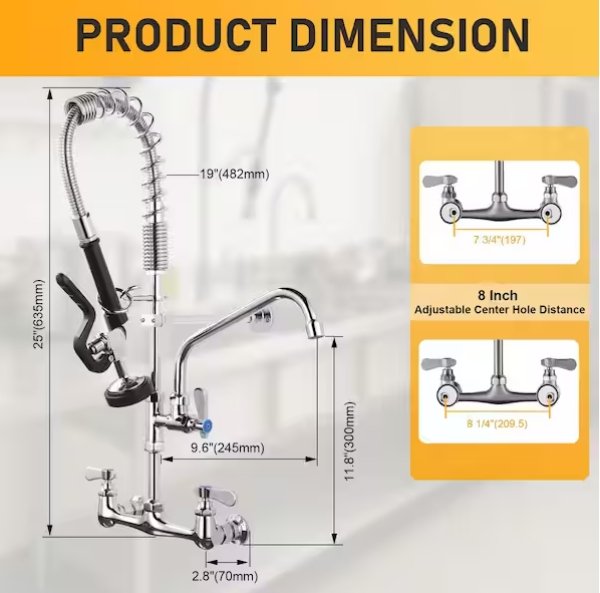 wowow wall mount triple handle kitchen faucet with pull-down sprayer - 25" - polished chrome - (model: 2314200c)