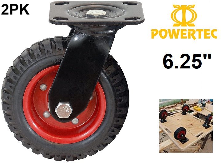 2pk POWERTEC HEAVY DUTY SWIVEL INDUSTRIAL CASTER - 6.25" - BLACK (MODEL: 17050)