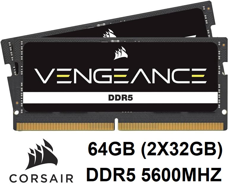 CORSAIR VENGEANCE SODIMM DDR5 RAM 64GB (2x32GB) 5600MHz CL40 Intel XMP iCUE Compatible Computer Memory - Black (MODEL: CMSX64GX5M2A5600C48)