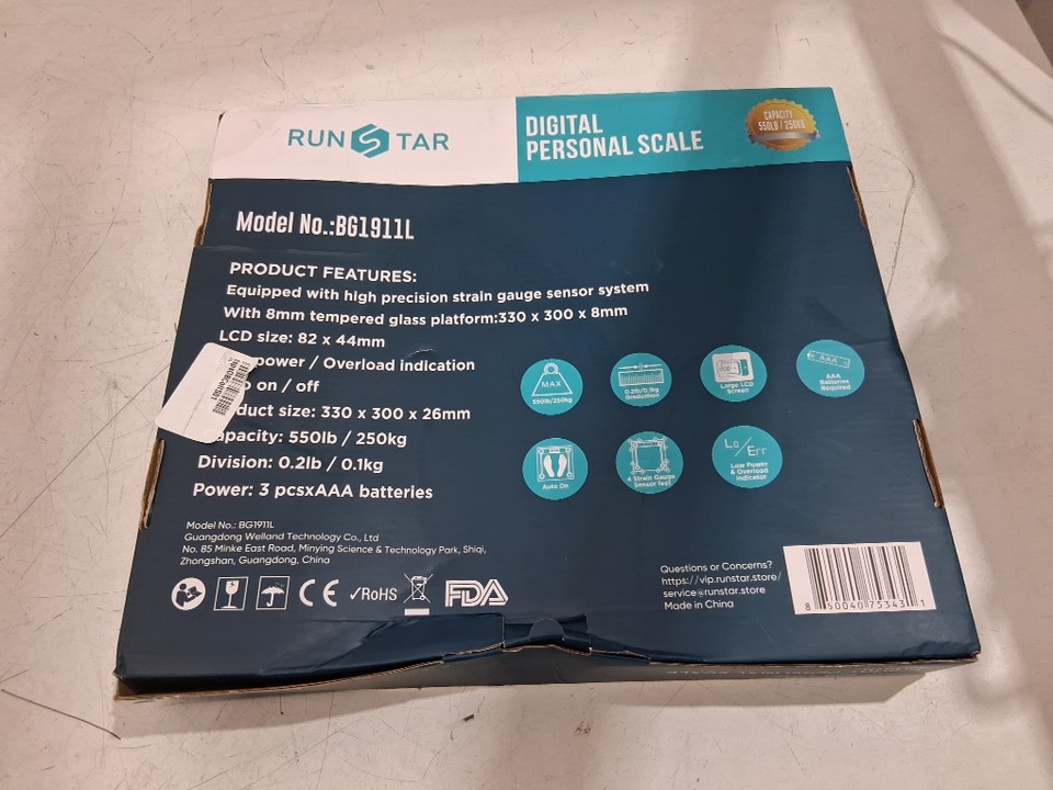 runstar digital bathroom scale with wide platform - 550lbs capacity - lcd display - black - (model:BG1911L)