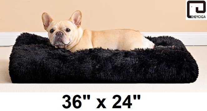 EHEYCIGA fluffy Calming Dog Crate bed - 36" x 24" - black