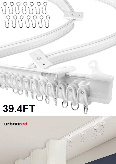 URBANRED Flexible Bendable Ceiling Curtain Track - FOR MOST CURTAIN TRACK SYSTEMS - 39.4FT - WHITE