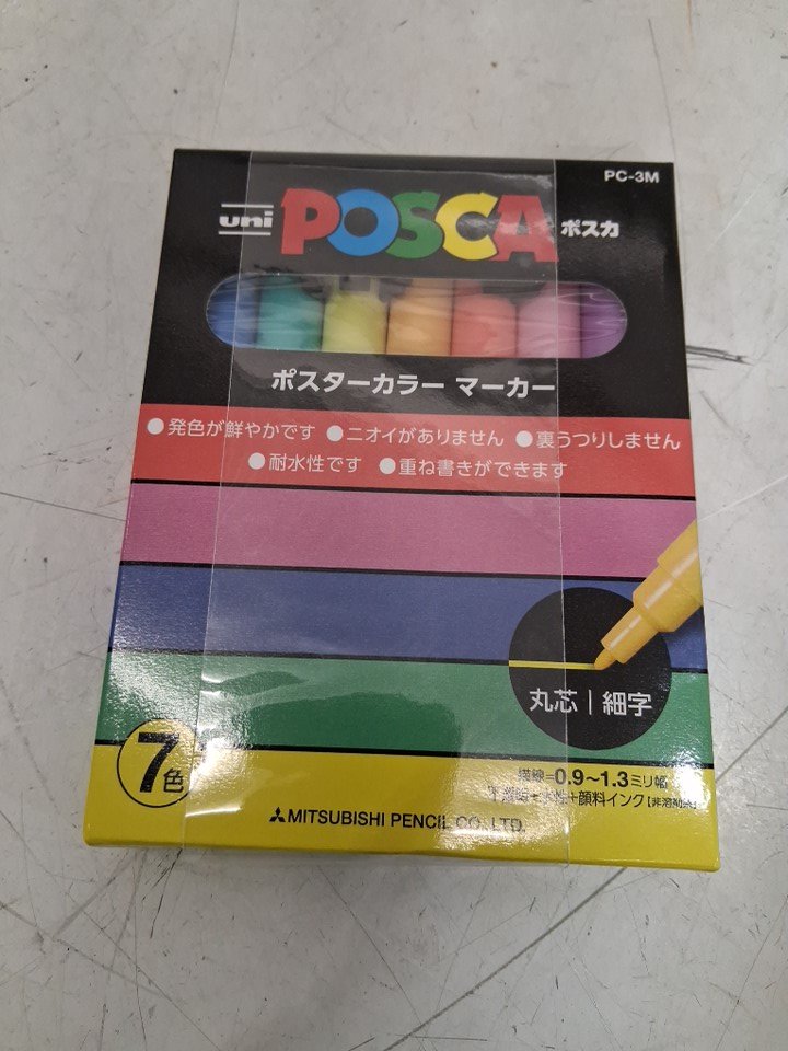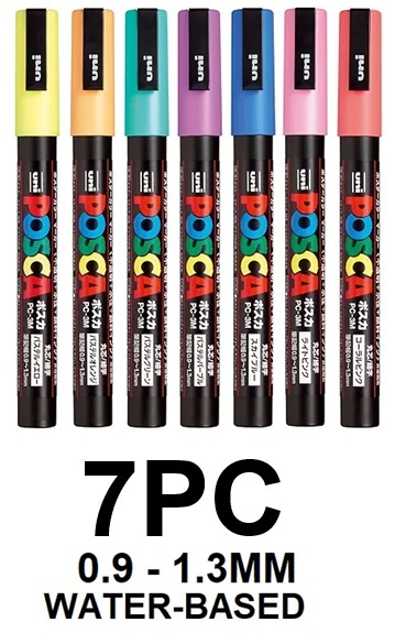 7PC UNI POSCA WATER-BASED PAINT MARKERS - PC -3M (0.9 - 1.3 MM) - ASSORTED COLOURS (MODEL: PC-3M)
