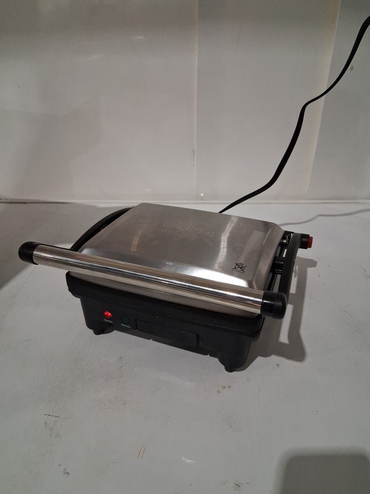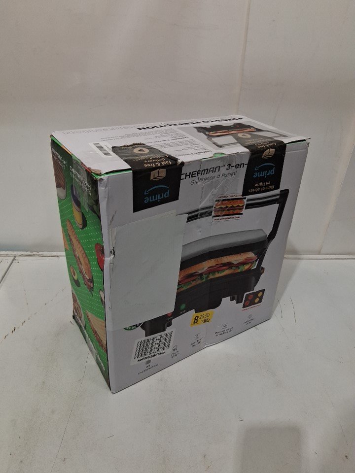 Chefman 3-IN-1 Panini Press Grill and Gourmet Sandwich Maker with Non-Stick Coated Plates Opens 180º - 1000W - 120V - black/silver - (model: tsk-2978ag)