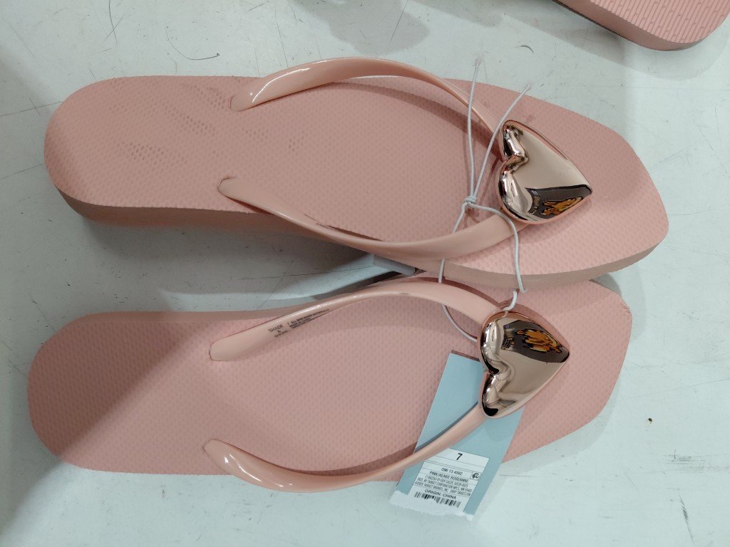 women's Shade & Shore Heart thong flip flip - size 7 - pink/rose gold