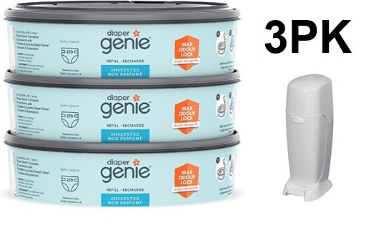 3pk diaper genie pail system unscented refills - blue