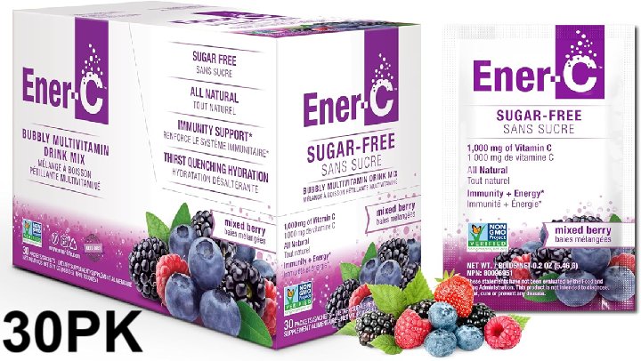 30PK Ener-C Sugar Free mixed berry Multivitamin Drink Mix- 1000mg Vitamin C