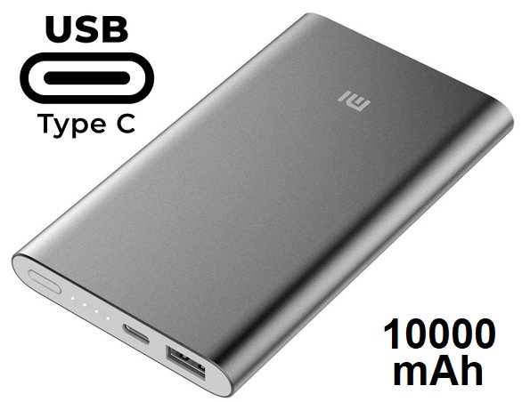 Xiaomi Mi Power Bank Pro with USB type c - 10000mah - black/chrome