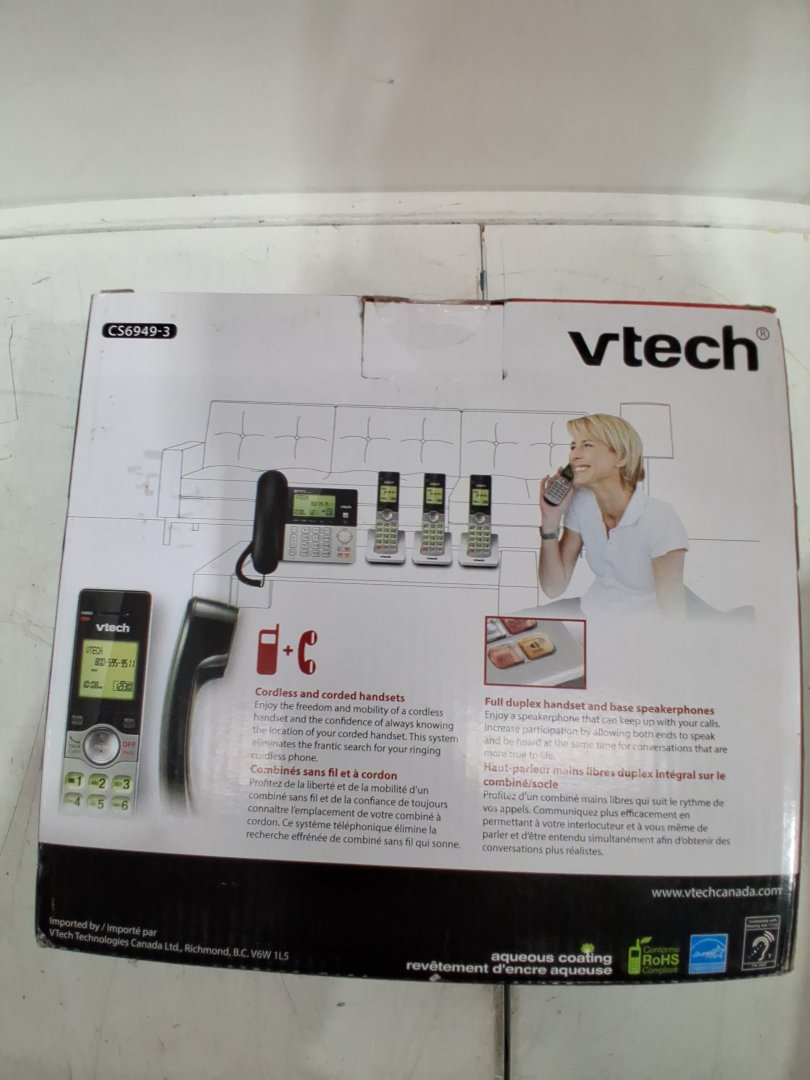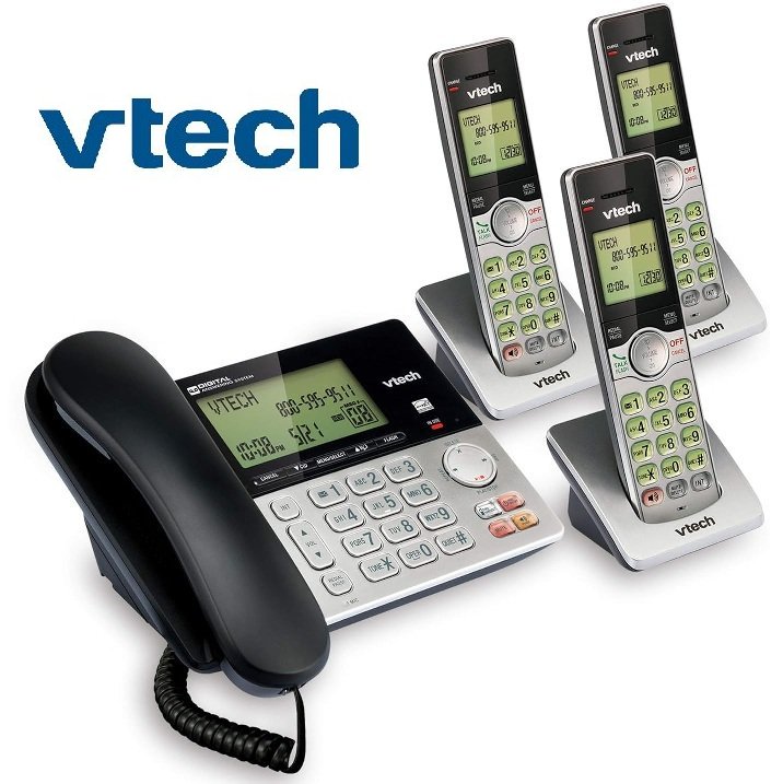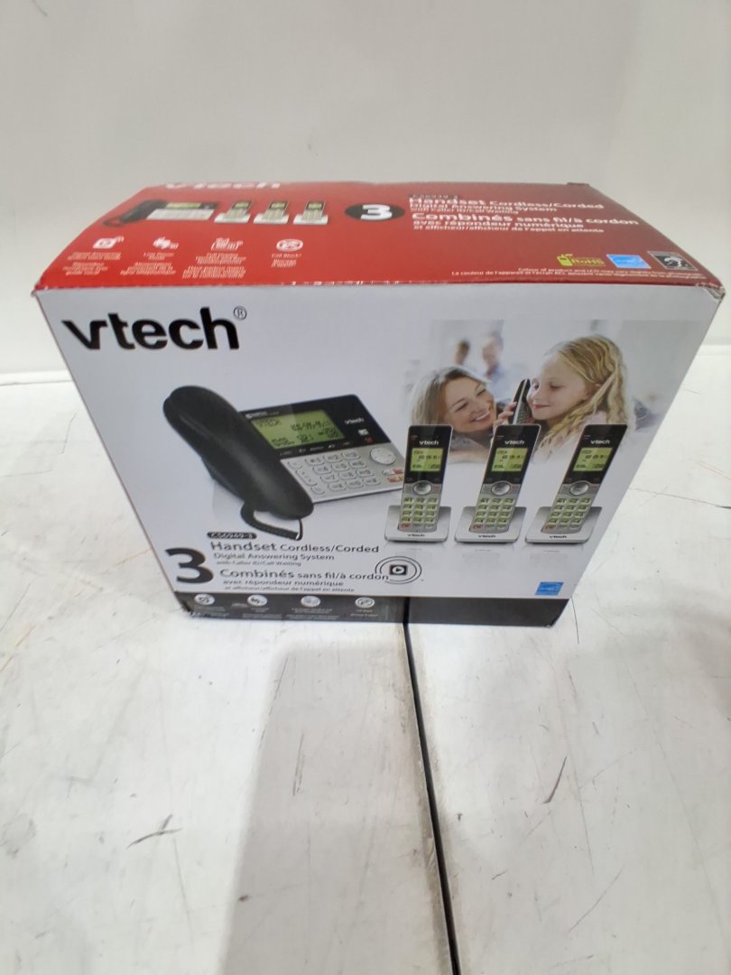 VTECH DECT 6.0 Corded/3-Cordless Telephone System WITH CALLER ID/CALL WAITING- BLACK/GREY - (MODEL:CS6949-3)