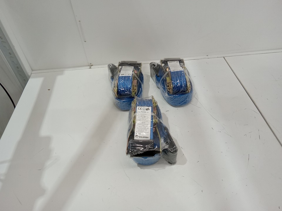 3pk Saluinoki heavy duty E-track ratchet strap - 2" x 30FT - 6600LBS working load - Blue