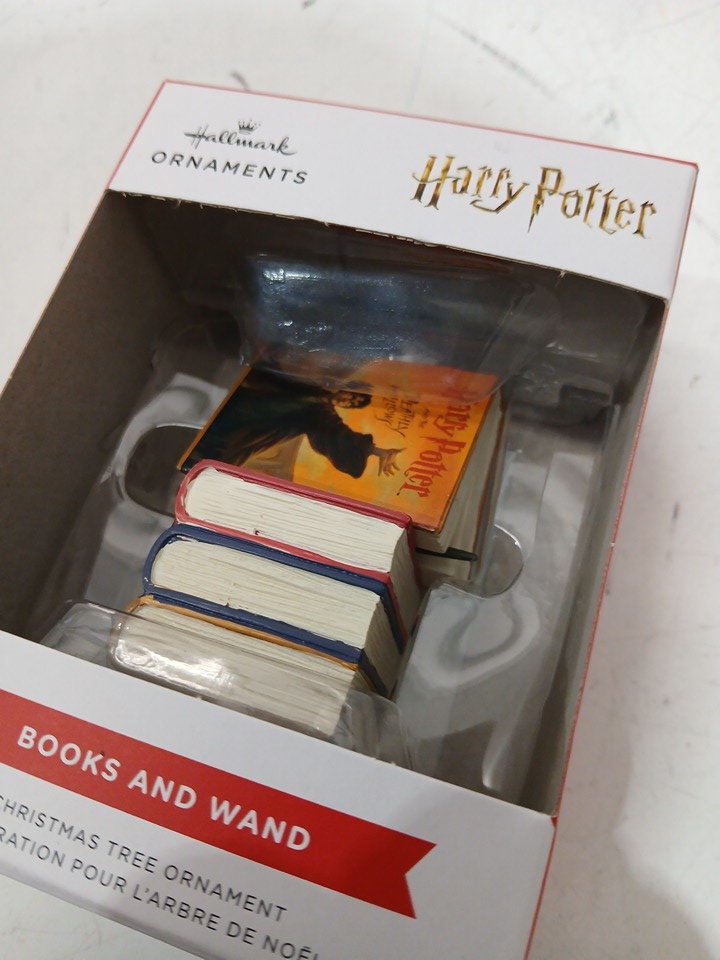 HALLMARK HARRY POTTER BOOKS AND WAND CHRISTMAS ORNAMENT